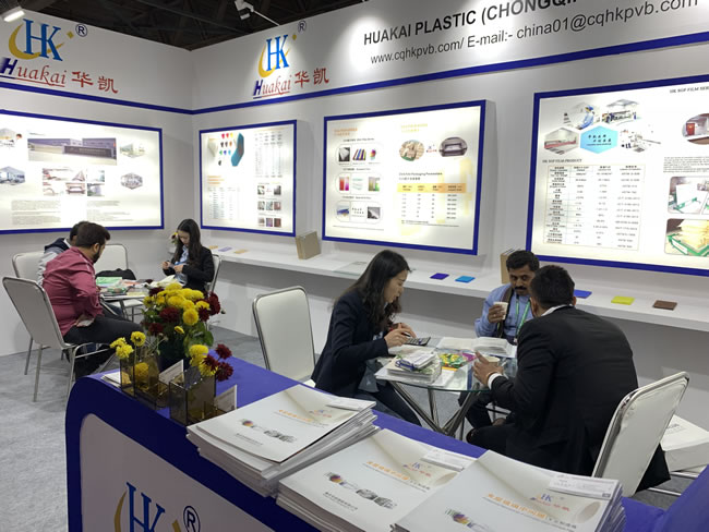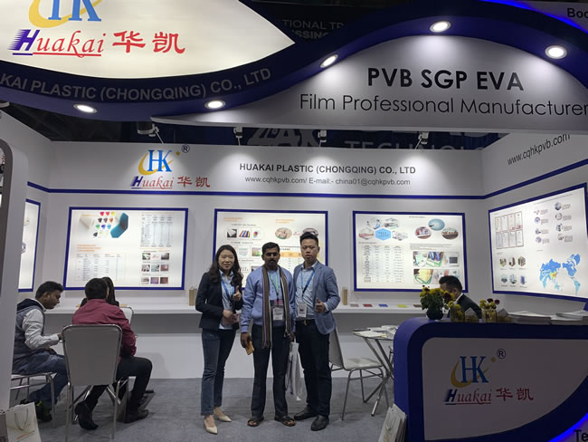 我司參加了本次盛會。此次展會主要集中展示了隔音/隔熱PVB膠片,SGP膠片,EVA膠片及2大新產品:熱漸變PVB膠片,SGP膠片。在這幾天的展會中,華凱企業展臺吸引了海內外客商的極大關注,其中SGP膠片,PVB膠片,EVA膠片等新產品成為本次展會的一大亮點。