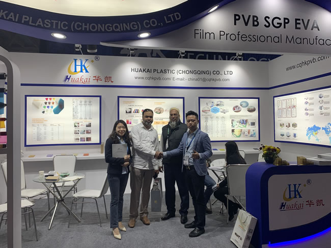 During these days of the exhibition, Huakai's booth has attracted the attention of many customers at home and abroad. Especially our products SGP film, PVB film, EVA film and our other new products became a highlight of this exhibition.